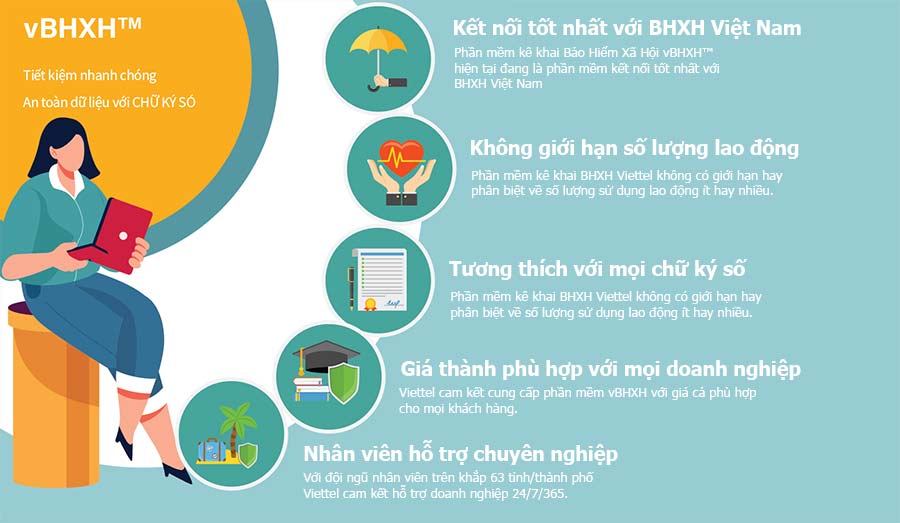 vBHXH™ là phần mềm kê khai Bảo hiểm xã hội điện tử do Viettel cung cấp, cho phép doanh nghiệp và các tổ chức thực hiện các thủ tục hồ sơ bảo hiểm đáp ứng chuẩn định dạng dữ liệu của BHXH Việt Nam trong giao dịch điện tử.